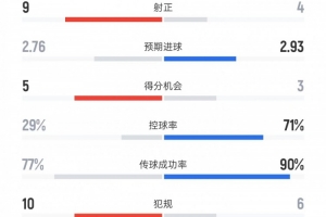 传球成功率——77%比90%