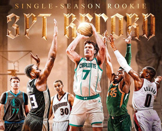 与此同时,康神迎来一项神级里程碑。据NBA官网数据统计,康神距离前蜂王沃克保持的队史单赛季三分球命中数纪录(260个)仅差7个。黄蜂队还有9场比赛要打,按照康神场均3.5记三分球的输出,他最快1场、最慢3场就能完成这项神级里程碑。在另外一项数据统计中,康神本赛季共4次单场砍下至少25分+5篮板+5助攻+5记三分球,排在新秀历史第2位,仅次于库里(7次)。除非康神继续开挂,否则,库里的这项纪录很难被打破!