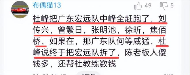 杜锋把广东队坑惨了。球迷说“杜峰把广东宏远队中锋全赶跑了,刘传兴,曾繁日,张明池,徐昕,焦泊乔,如果还在,那广东队何等威猛,如今把广东宏远队拆了”。送走徐昕后,又逼退焦泊乔,如果内线无人可用,场场内线被打爆,请问杜锋,你到哪里买后悔药!?
